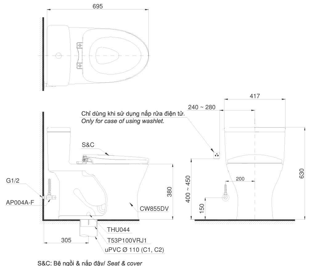 Bản vẽ kỹ thuật bệt TOTO MS855DE2