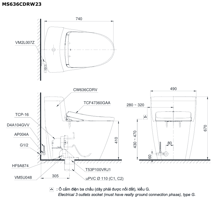 • Nắp rửa điện tử: TCF47360GAA (W23) – Xuất xứ: Malaysia