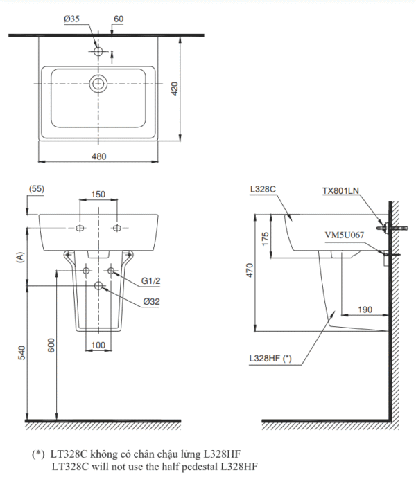 – Thân chậu: L328C