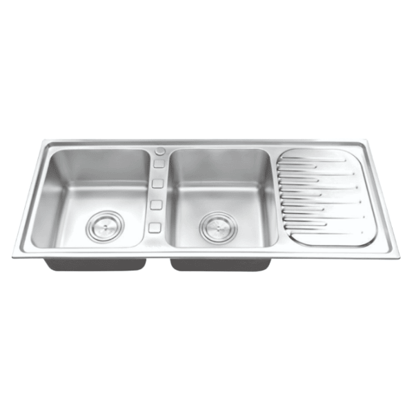 – Chậu rửa chén Winland – D04 với kích thước 1200 x 500 x 230mm là dòng sản phẩm mới được sản xuất theo phương pháp dập nổi định hình từ nguyên liệu inox cao cấp siêu bền, chịu nhiệt tốt.