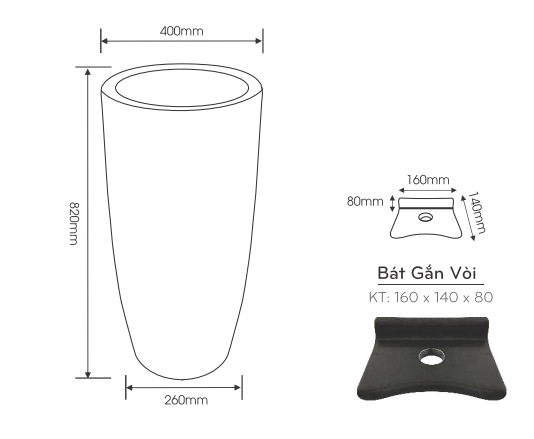 • Loại: Chậu sứ mỹ thuật trụ đồng bộ
