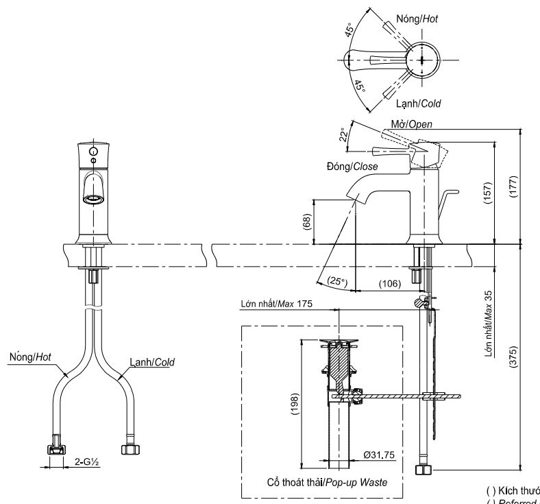 • Áp lực nước: 0.05MPa ~ 0.75MPa