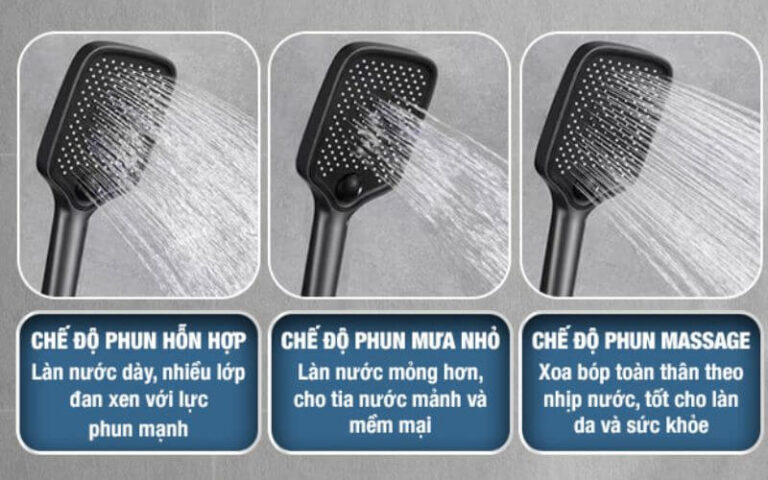 Chế độ phun nướcNhiều chế độ (mưa, massage, sương mù…), trải nghiệm tắm thư giãn hơnÍt chế độ (thường chỉ 1-2 kiểu phun nước cơ bản)